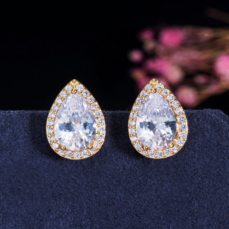 SK_1007 Clear Cubic Zirconia Teardrop Stud Earrings